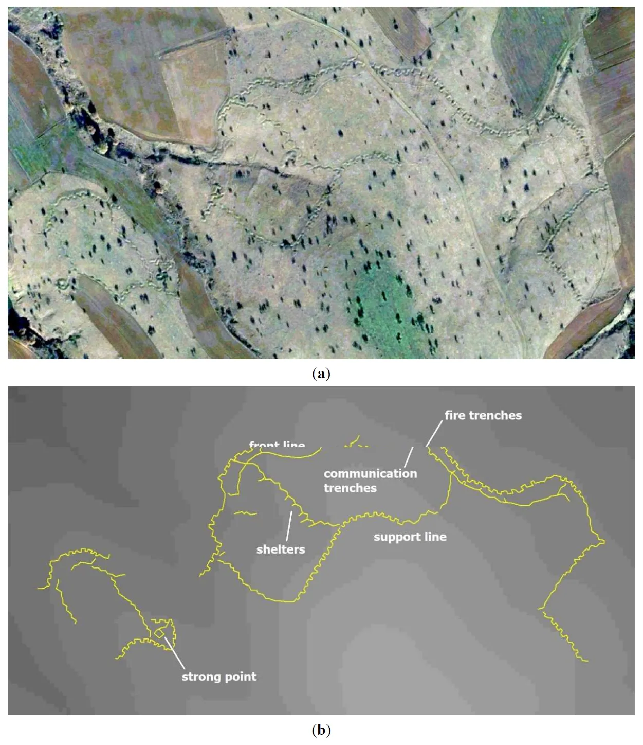 Thus, another aim of this paper is to map these military trenches, which are almost absent from modern GEP images.