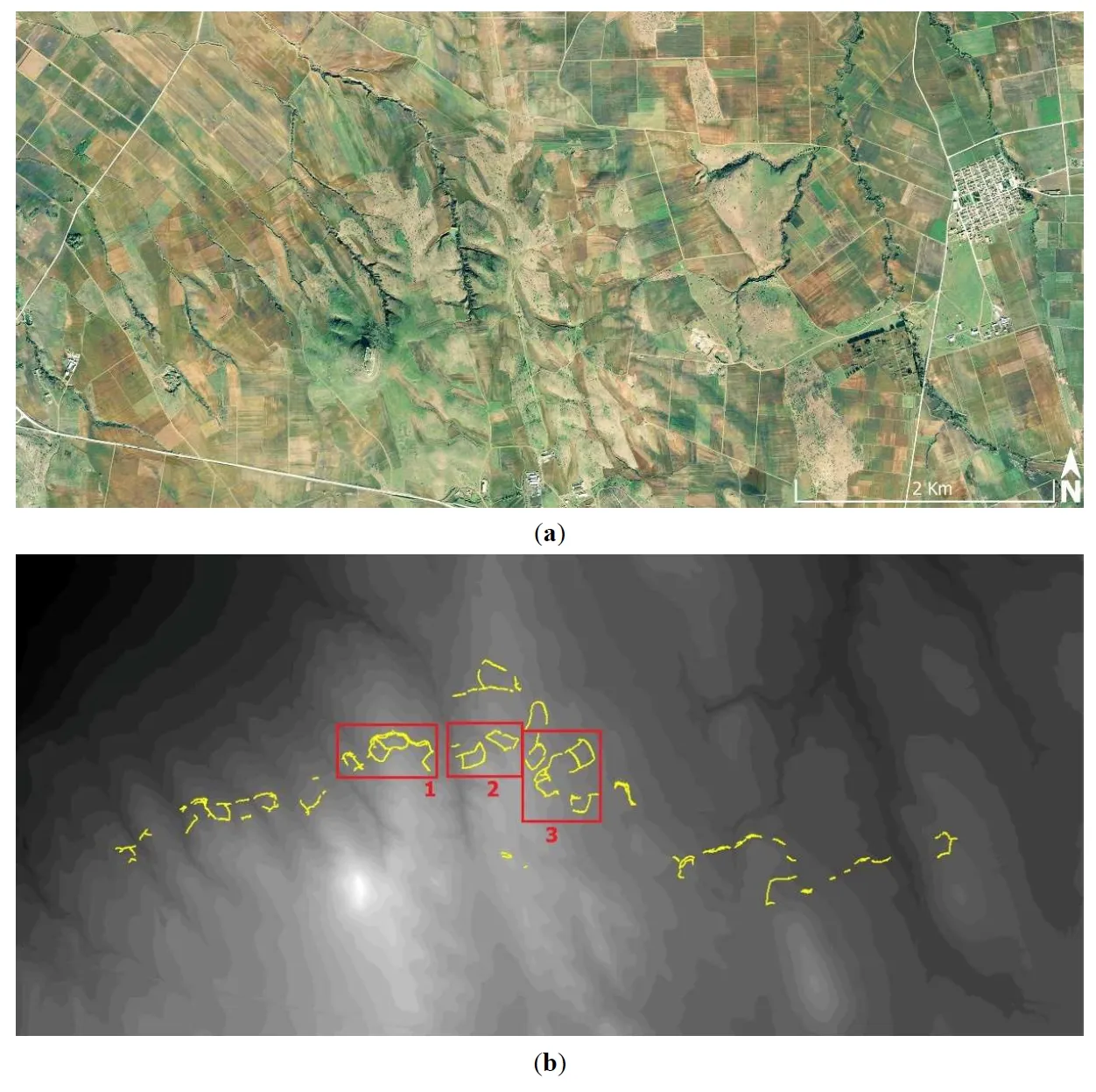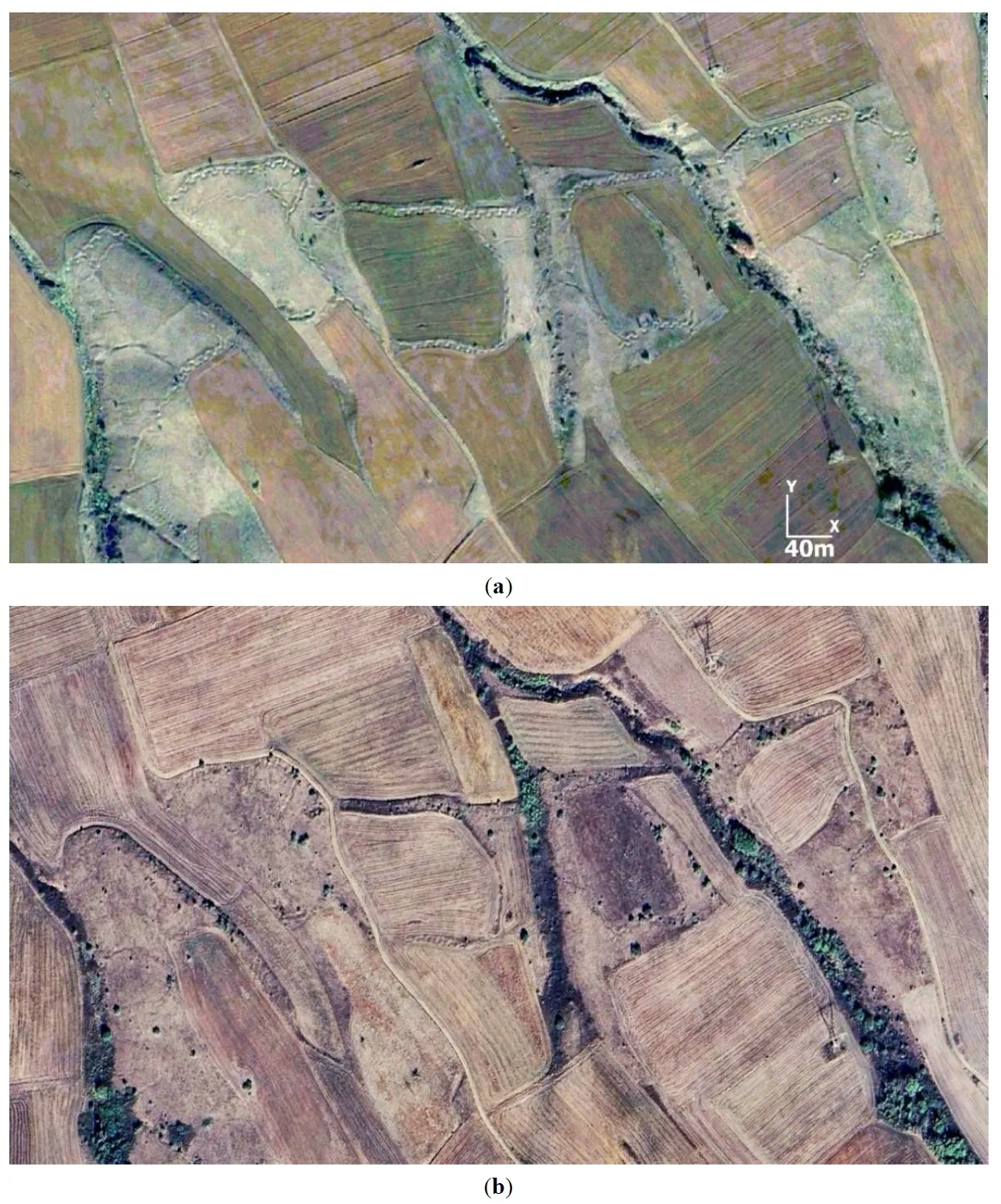 25]. Survey areas can be anywhere in the world, and their extent is not subject to constraints, thus facilitating studies that conduct research at any scale. For the paper, GEP images from 2004 were utilized as military trenches are almost absent in modern images.