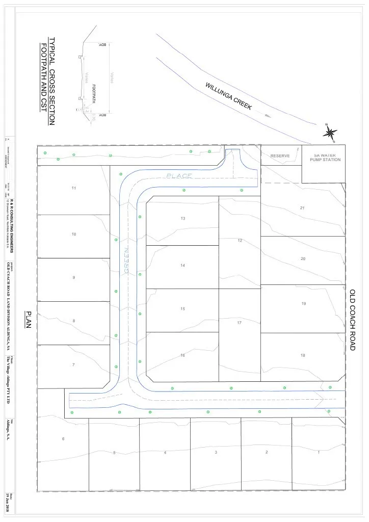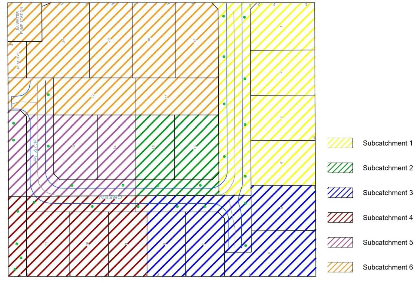 The study area, Village Green, is a residential development located in Aldinga, South Australia (Figure A1). This area is located west of the southernmost part of the Adelaide Hills. Terrain is mostly flat, with mild slopes. The study area contains 21 allotments of various sizes. Hot, dry summers and wet, cold winters describe the climate of this region.