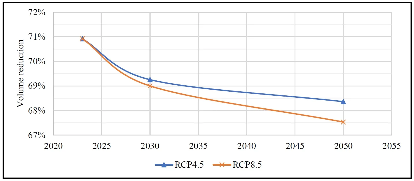 14], studies focusing on runoff reductions are scarce. A case study in Brazil suggested that runoff reduction obtained with the use of RWTs will be negatively impacted due to CC, although this runoff reduction is decreased in less than 5% [