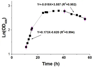 600, 2 mL of sample were pipetted into a pre-dried EP tube in triplicates, then centrifuged at 13,000 rpm for 5 min, and the supernatant was discarded. The cells were washed with 9% NaCl once and collected by centrifugation, then dried at 80 °C for more than 24 h after carefully removing the wash solution. The weight of each tube containing the dried cells was measured with an analytical balance. The correlation coefficient of CDW was defined as gram per liter per OD