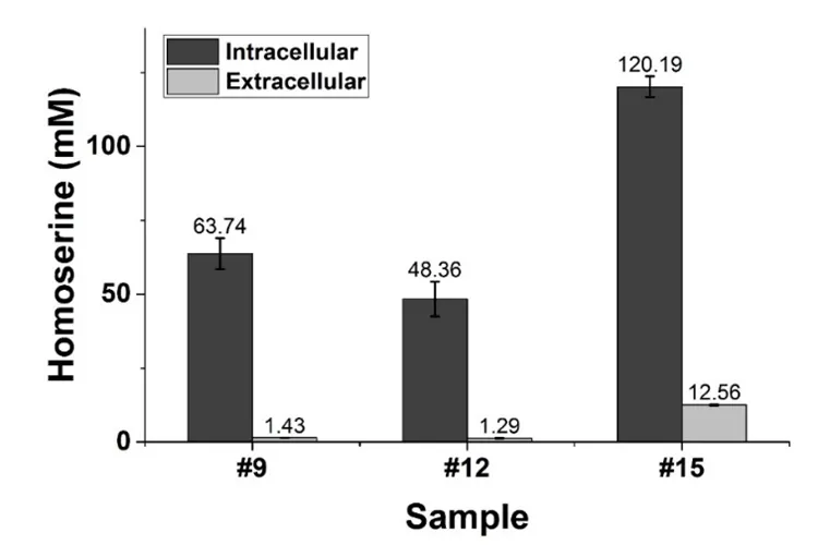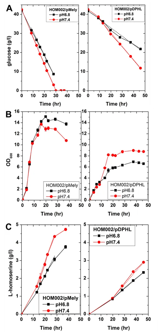 For the measurement of homoserine concentration in the culture broth, filtered samples were used for analysis in an Ultimate 3000 HPLC (Dionex/Thermo Fisher) with a FLD 3100 detector and a Kinetex