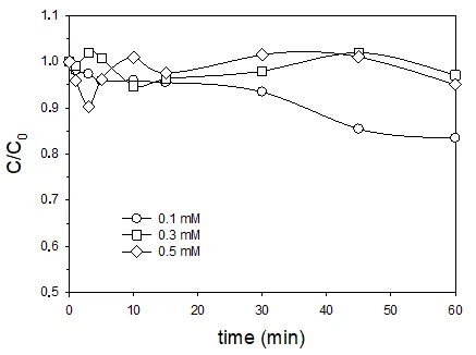 Blank experiments were carried out in order to detect the existence of degradation by the action alone of 254 nm UV light (photolysis), H