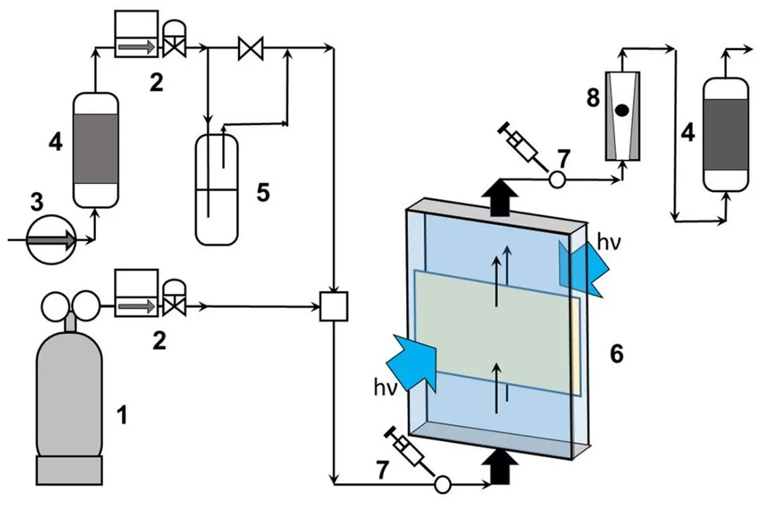A demountable sandwich-type reactor was constructed and mounted, with a central 3D-printed flat plate of plastic coated with TiO