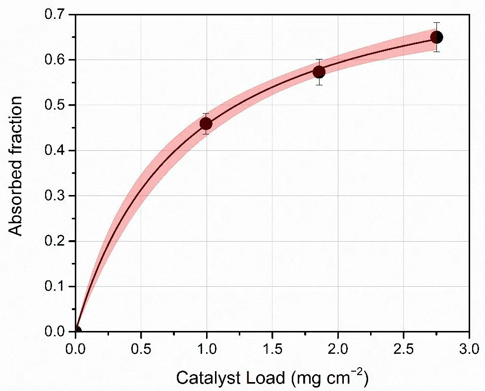 By observing the results of the absorbed fraction by the catalyst layers, a saturation phenomenon could be seen. This allows us to propose a simple model of the absorbed fraction as a function of the superficial catalyst load (