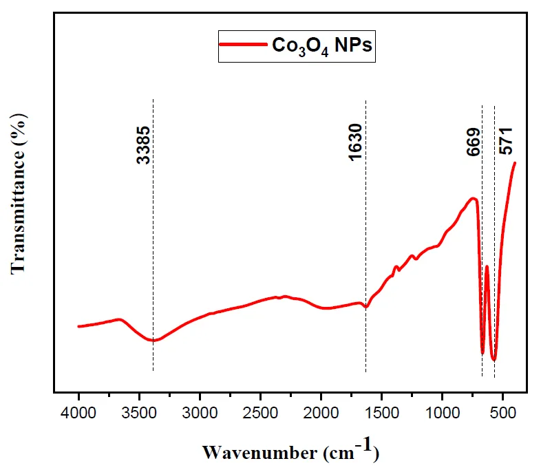 . FTIR spectra of Co<sub>3</sub>O<sub>4</sub>·NPs.