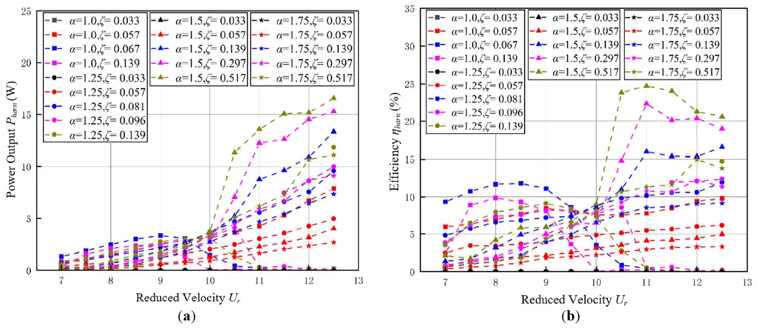 25] designed a novel “Cir-Tri-Att” oscillator and carried out experiments on oscillators with an aspect ratio 1:1 in the range of 0–100 V excitation voltages. This oscillator can utilize energy from both the VIV and the galloping. The experimental results indicate that the energy harness capacity of the oscillator is better than that of the triangular prism.