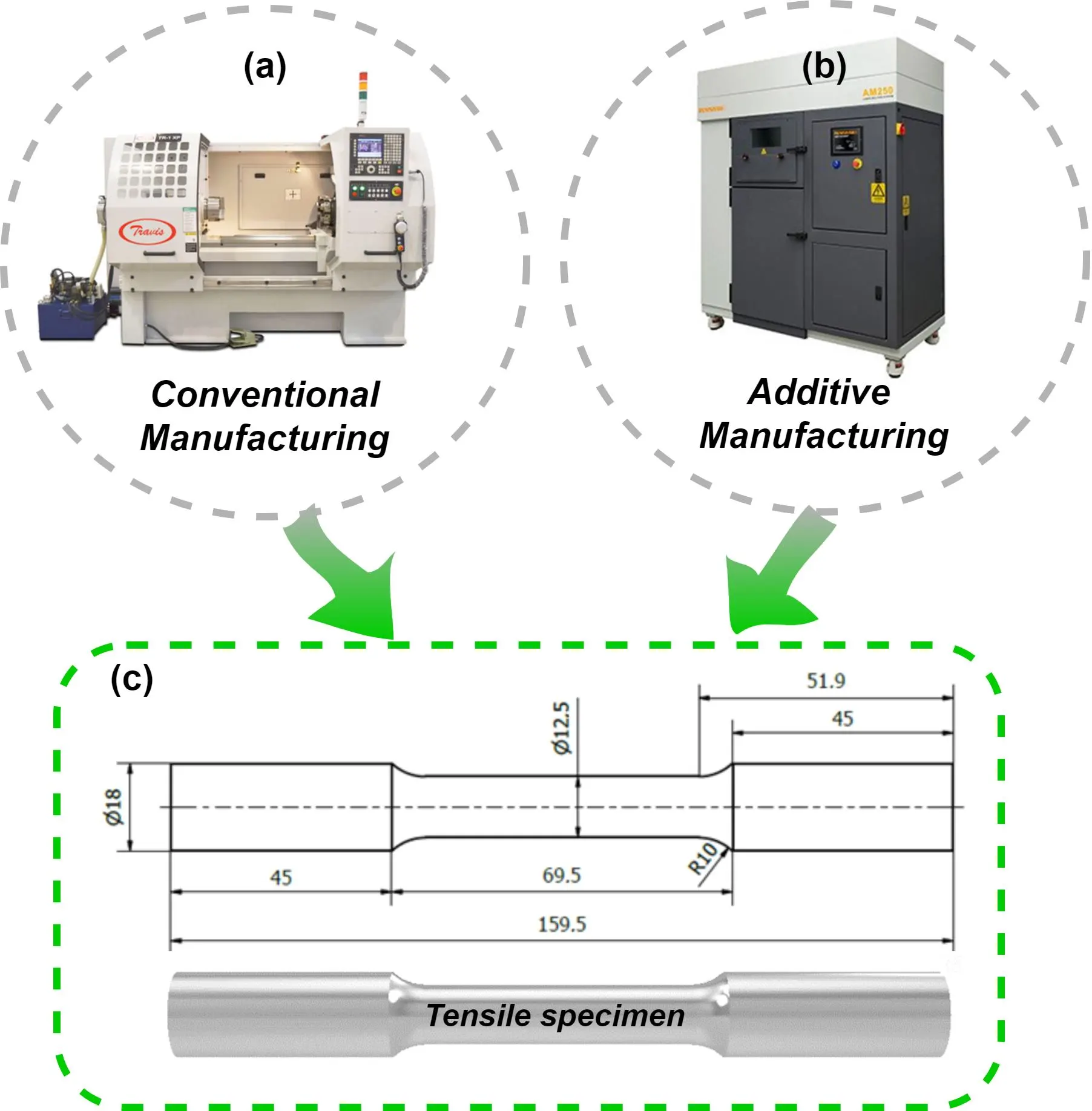 Foundation of the Study: Compare and evaluate the environmental impacts of additively versus conventional manufacturing of a tensile specimen for mechanical characterization.