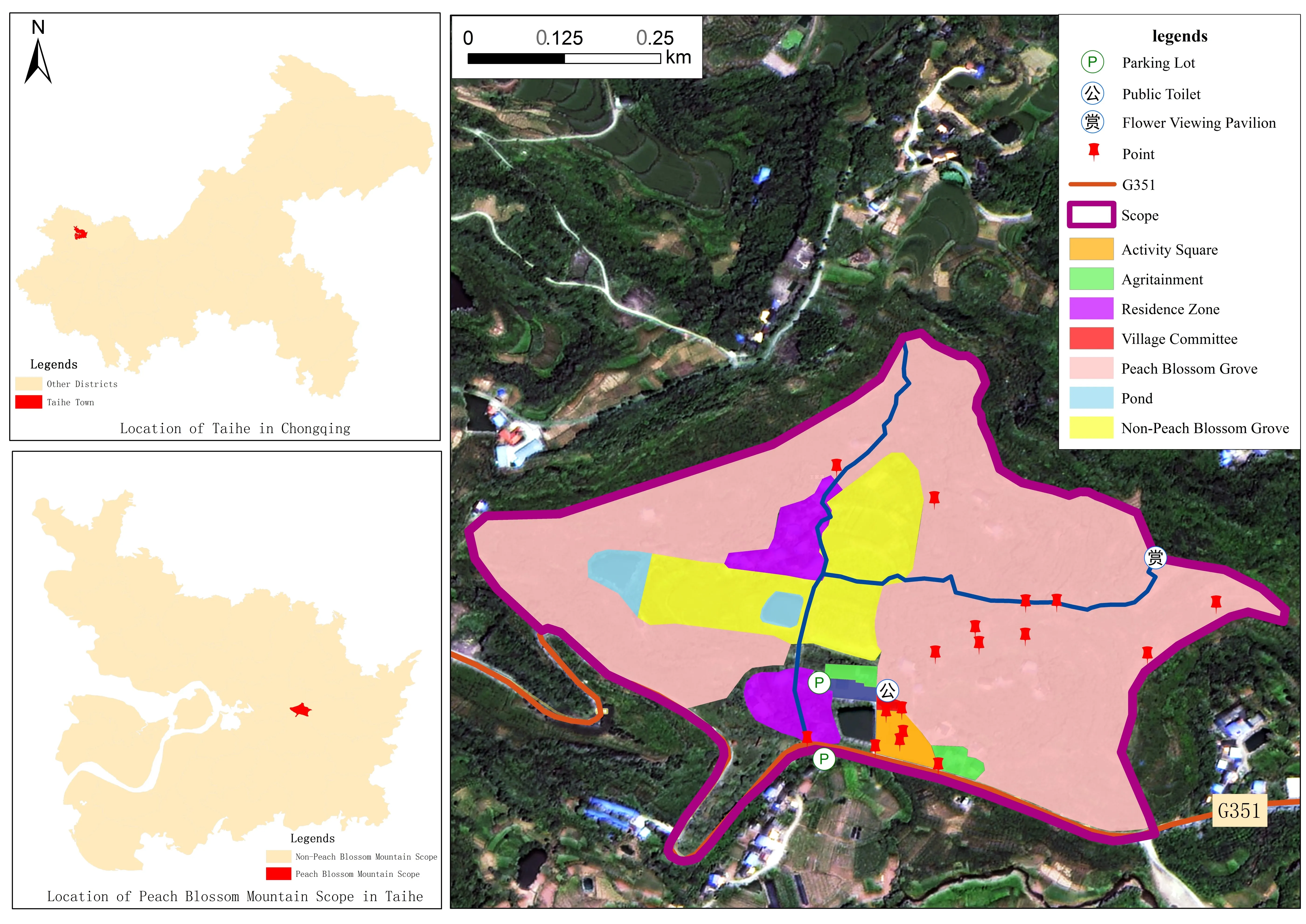 . Location of Taihe Peach Flower Festival. Source: Authors’ drawing.