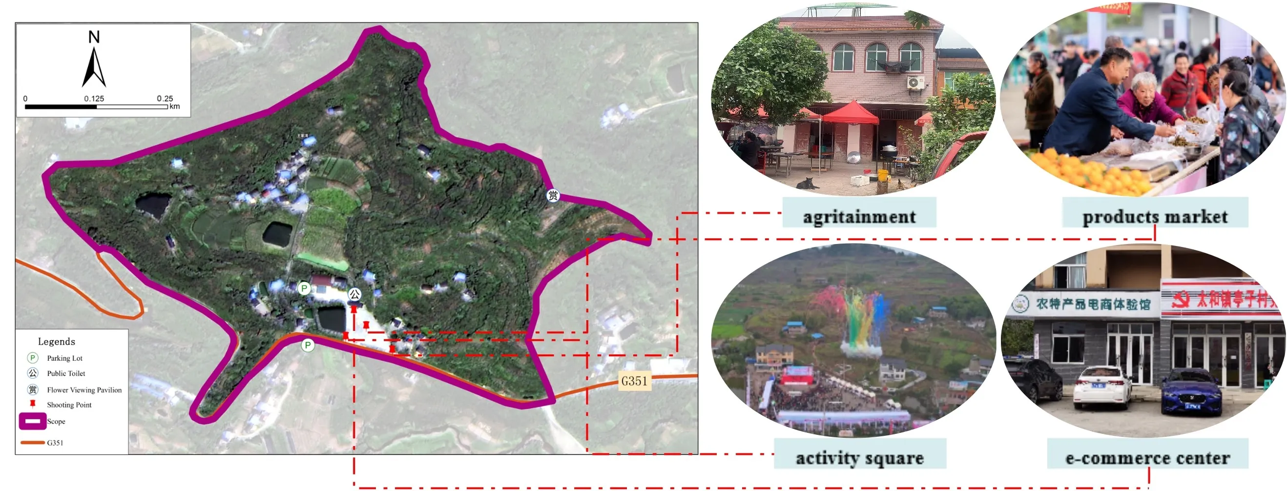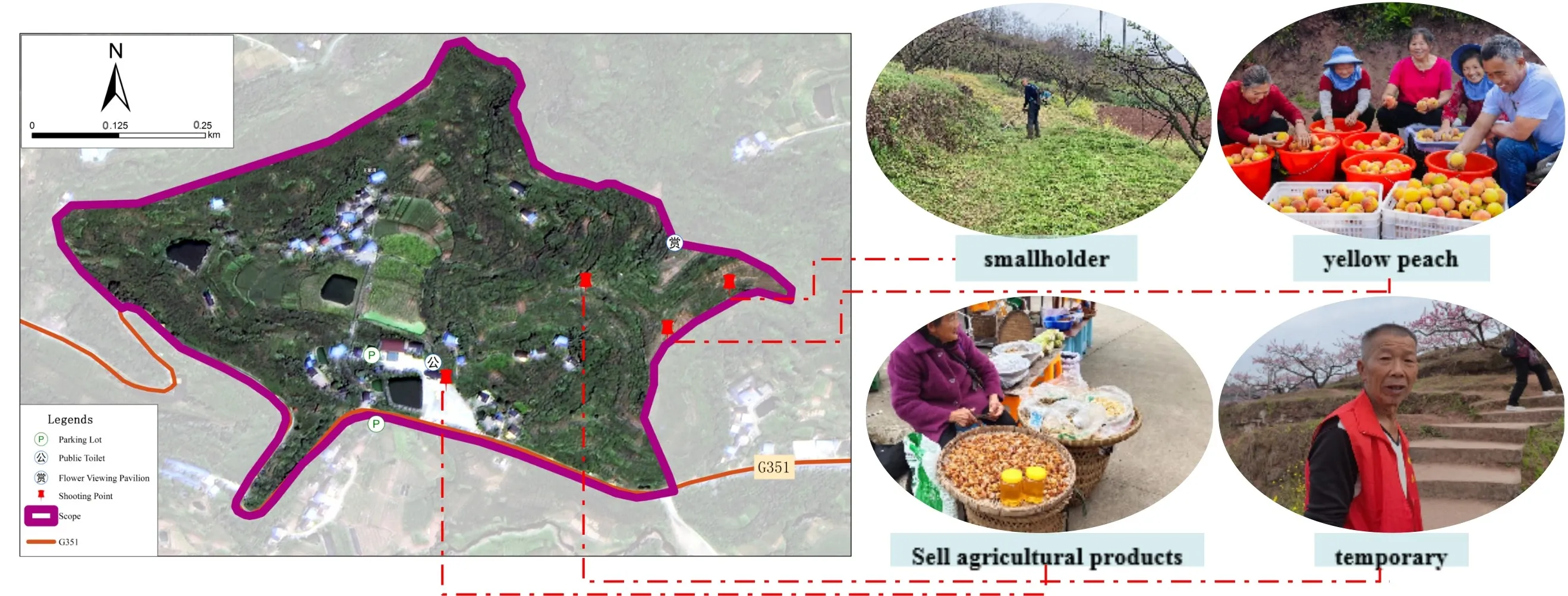 26]. Tingzi Village in Taihe Township attracts many people within a short period during the Peach Blossom Festival. Aside from the village subjects (village collectives and farmers), non-village subjects, such as tourists and traders, are also attracted.