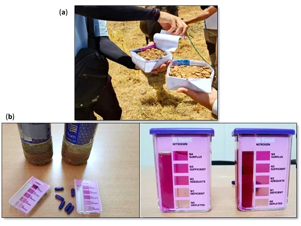 Soil samples were analyzed using a colorimetric nitrogen test, classifying nitrogen levels into four sufficiency categories (N1–N4).