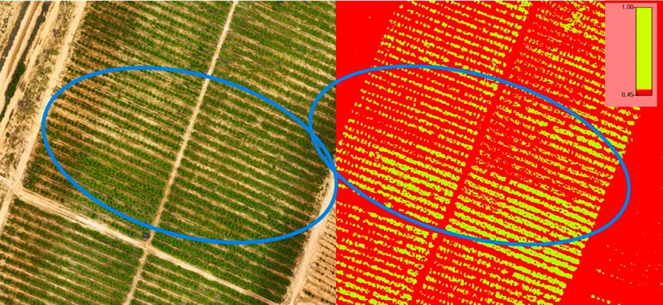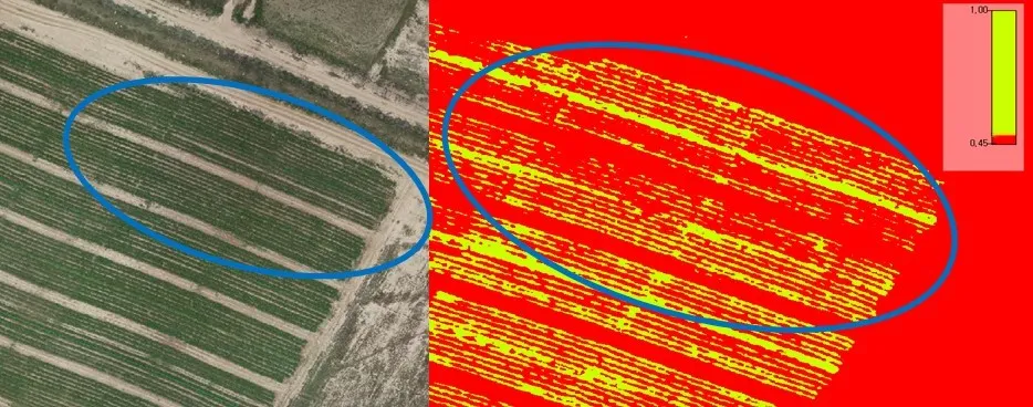 A follow-up drone flight two months post-fertilization captured NDVI data, evaluating the impact of nitrogen application on plant health ().