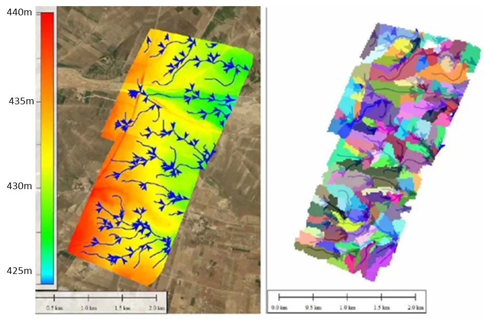 In addition to NDVI evaluations, watershed analysis was conducted using GIS tools to assess water distribution across the study area. Hydrological modeling techniques were applied to identify drainage patterns, potential erosion hotspots, and areas at risk of overexploitation. These insights contributed to optimizing irrigation strategies, ensuring efficient water use in precision agriculture.