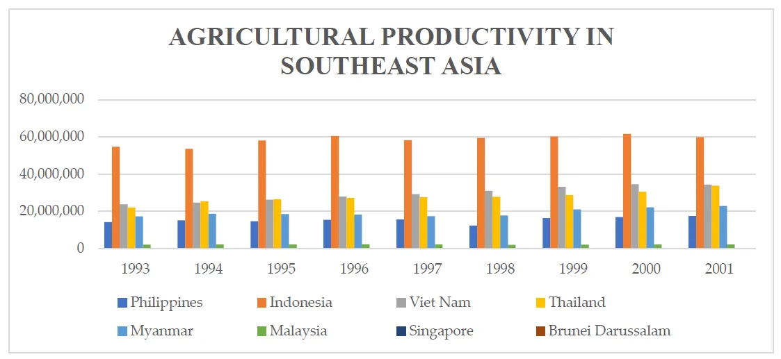 Numerous factors significantly influence agricultural productivity in South and Southeast Asia, including land, labor, technology, and trade dynamics. Research indicates that while technical progress has historically driven productivity, recent declines in efficiency and scale raise concerns about future growth. The availability of land and labor remains crucial. Studies show that in Indonesia, agricultural production has been affected by land depletion and labor dynamics, with employment in agriculture increasing despite land constraints [
