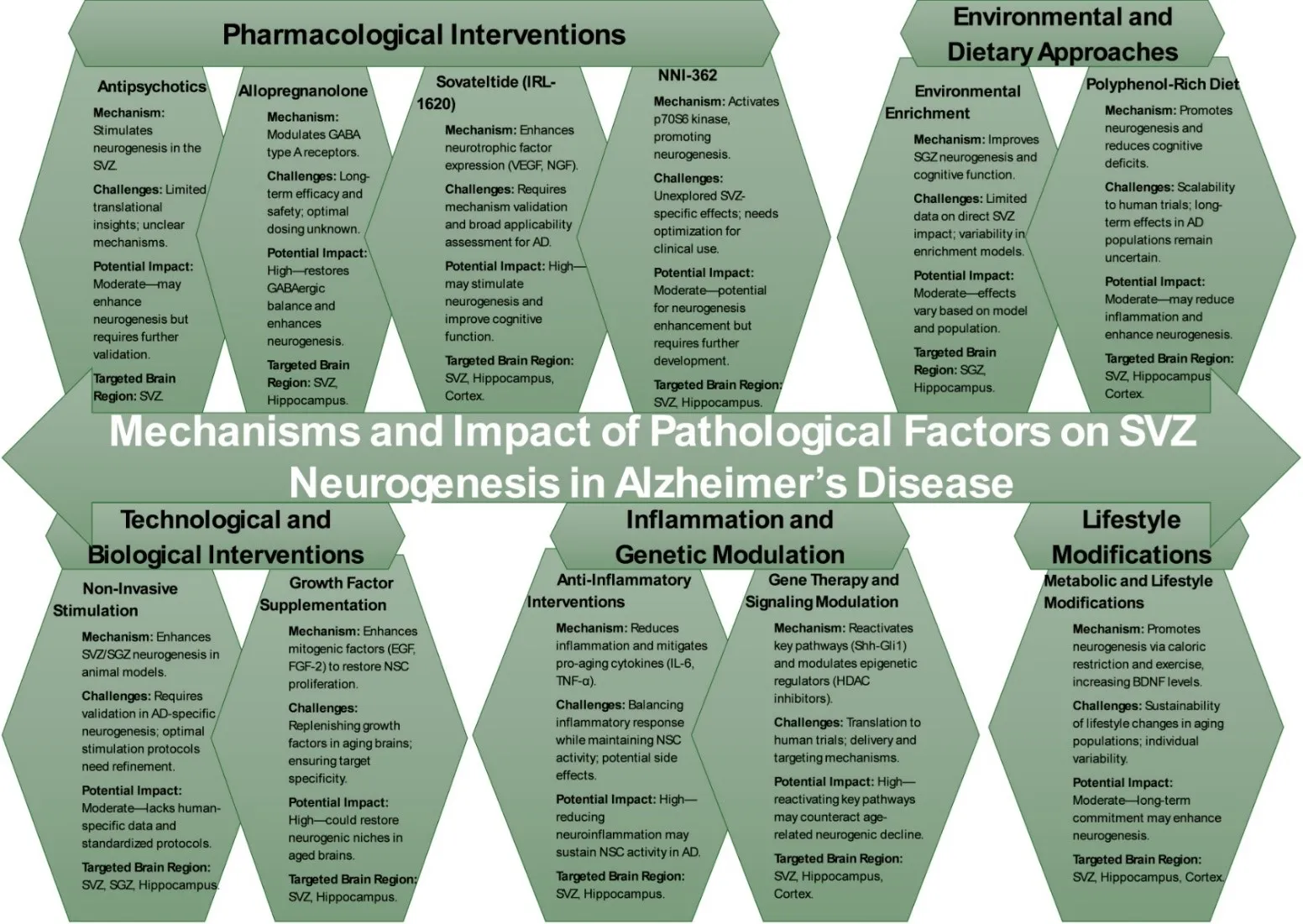 The potential to restore neurogenesis to baseline levels and its subsequent impact on cognitive function, particularly in the context of aging and neurodegenerative diseases, remains an unresolved question. This article emphasizes the critical role of NSCs in neurogenesis, highlighting how their function declines with age, contributing to cognitive impairment and the progression of AD. It examines the complex interactions between tau pathology, amyloid-beta accumulation, chronic neuroinflammation, and environmental factors in AD, which disrupt neurogenesis and impair NSC proliferation and differentiation, particularly within the hippocampus and SVZ. Furthermore, the article explores the potential of various pharmacological and non-pharmacological therapeutic strategies to restore neurogenesis and cognitive function.