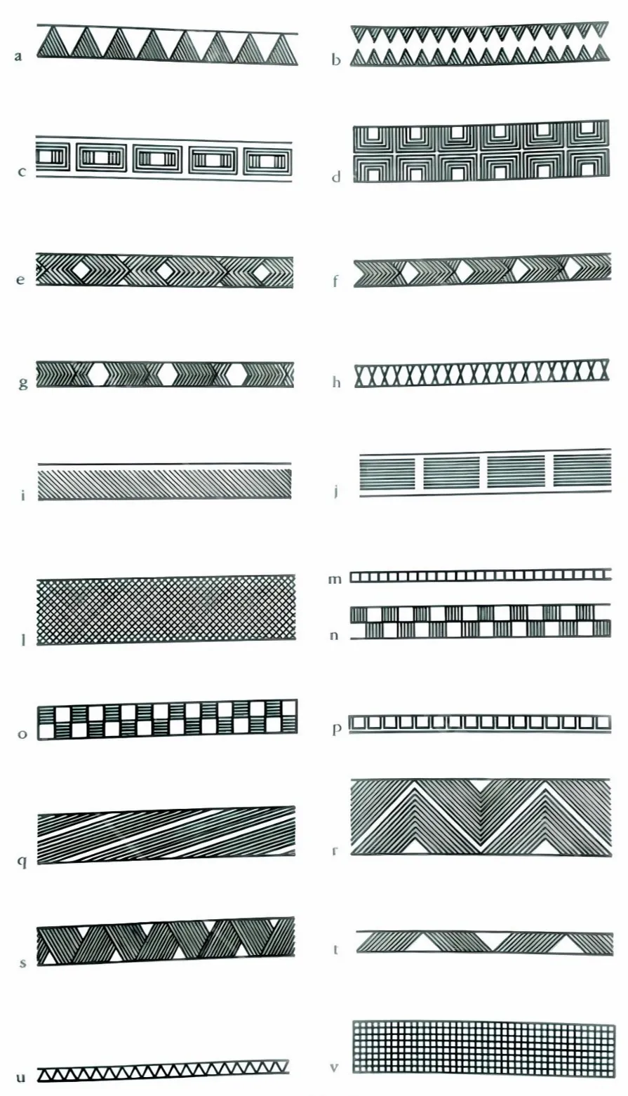 . (<b>a</b>–<b>j</b>,<b>l</b>–<b>v</b>) Decorative striped ornaments of the face (Kayapó-Xikrin), [