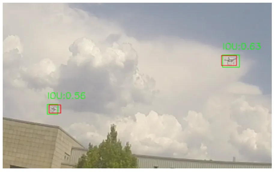 Figure 3. IoU results, where the green bounding boxes represent ground truth, and the red boxes indicate the predictions.