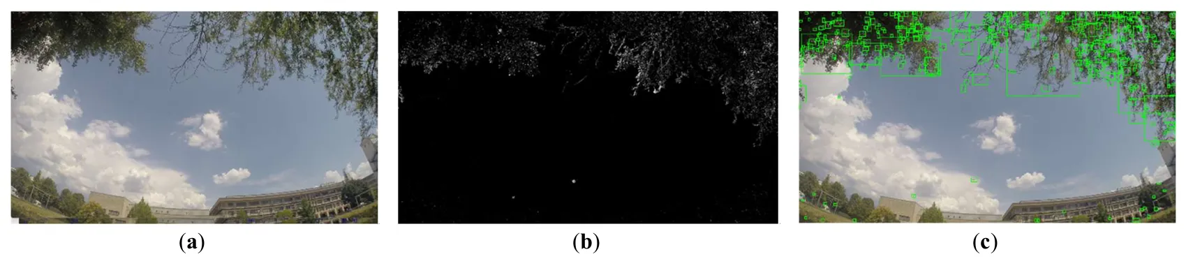 Once the background subtraction methods created the foreground mask, a Gaussian blur filter with a 3 × 3 kernel for MOG2, and a 5 × 5 kernel for ViBe was applied to reduce noise and smooth the mask, minimizing isolated noise pixels that could interfere with the detection of meaningful motion regions. To further refine the mask and eliminate small, irrelevant regions of motion, morphological operations were performed. An opening operation (erosion followed by dilation) with a 3 × 3 kernel was carefully implemented to remove noise while ensuring the small drones, which could appear as very small regions, were not inadvertently removed during the refinement process.
