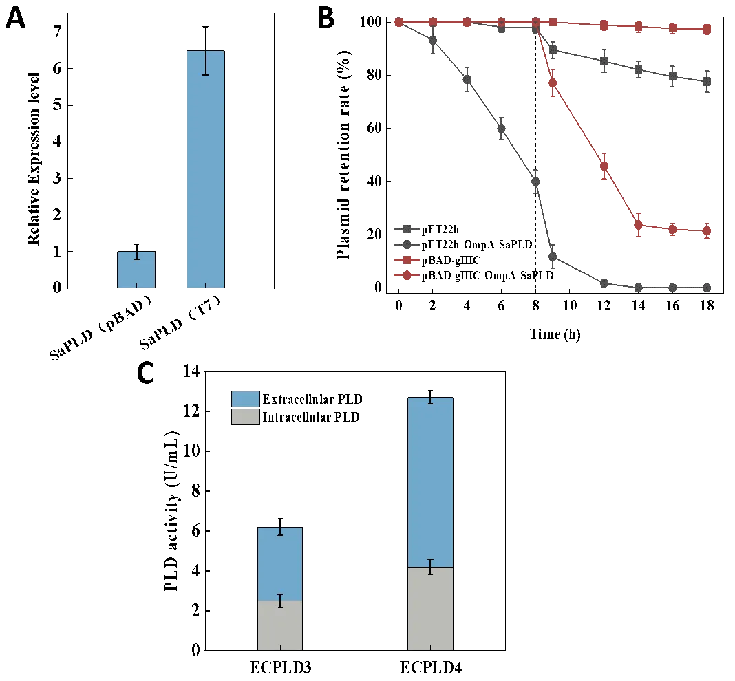 S. antibioticus and OmpA signal peptide was assembled into the vector pBAD-gⅢC to explore the effect of promoter pBAD on the expression of PLD.