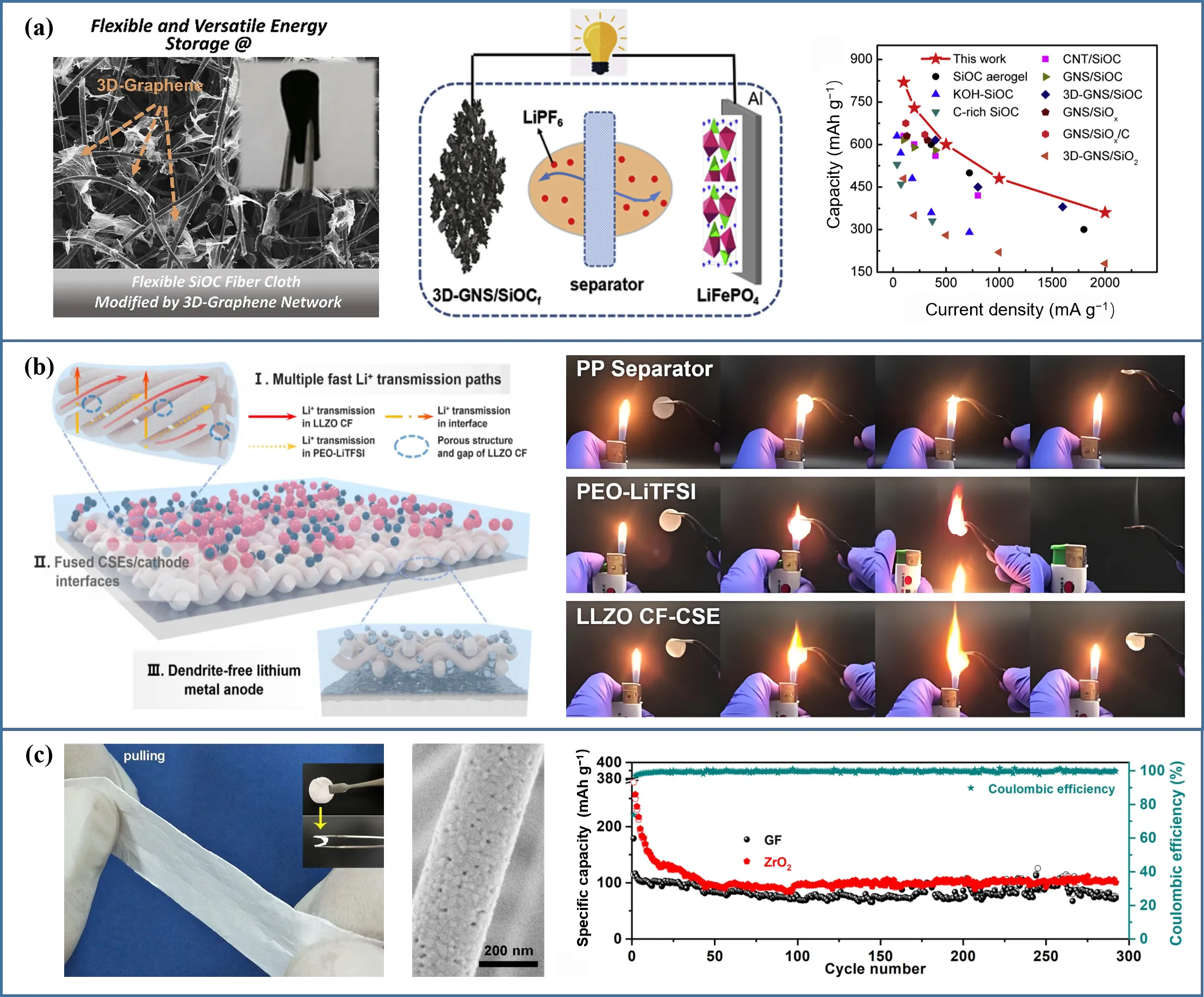 Conventional polymer-based components in energy devices, such as separators and electrolytes, struggle to meet the demands of flexibility and safety. For instance, polymer separators often suffer from low porosity, poor thermal stability, and flammability, compromising their performance and reliability. Similarly, liquid electrolytes pose risks of leakage and combustion. To overcome these challenges, researchers are turning to ceramic materials, particularly FCFs, which offer a unique combination of mechanical flexibility, high thermal stability, and electrochemical inertness.