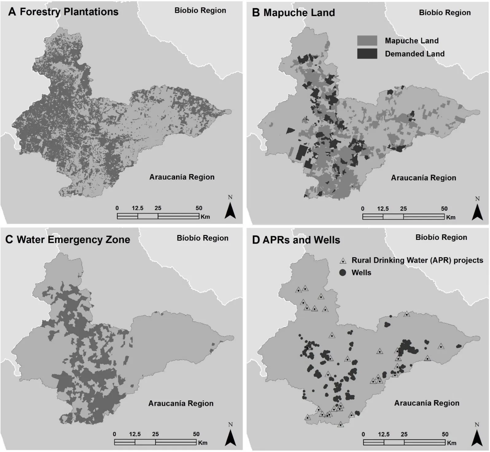 Studies based on political ecology and ethnographic methods have described the severity of limited water access in the Chol-Chol River watershed [