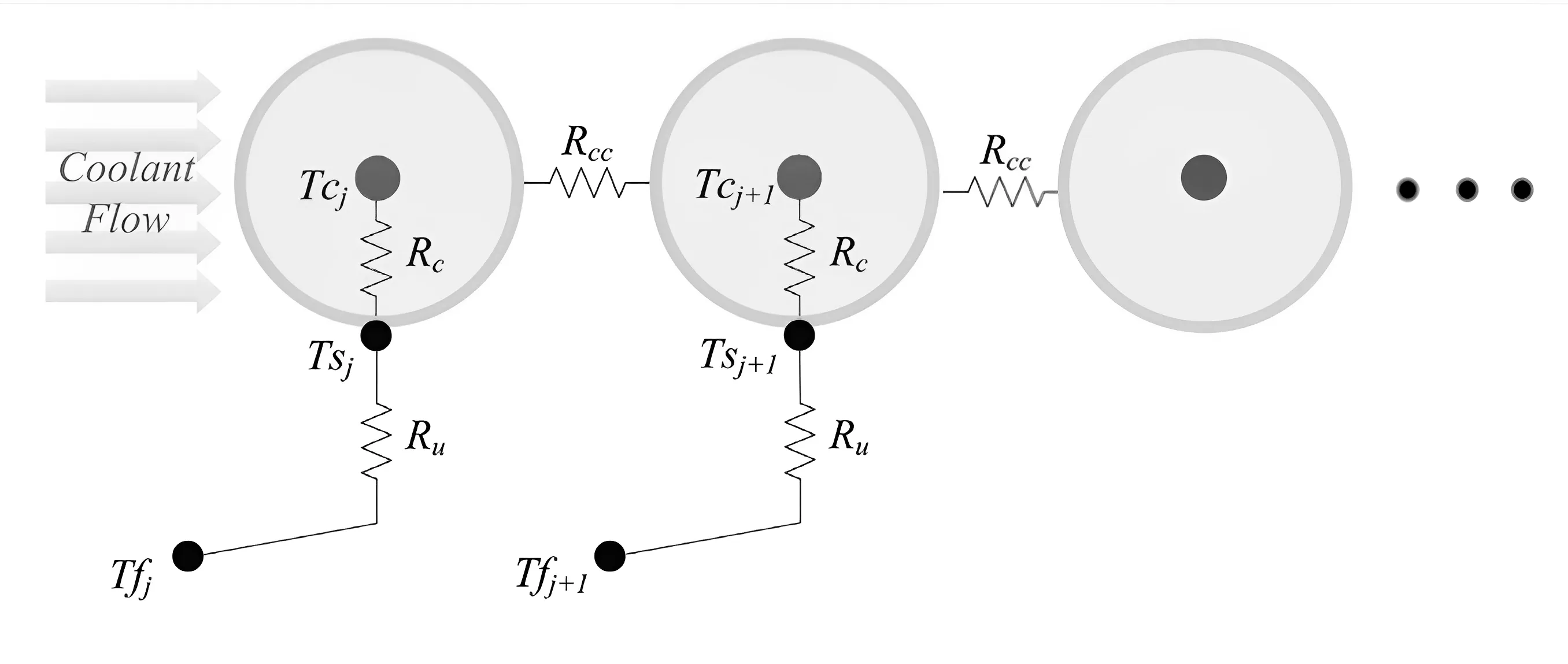 In order to accurately reflect the internal heat transfer mechanism, the modeling of the heat exchange process is simplified in this study. In it, the heat exchange between the metal core and the surface is simulated by heat conduction over the thermal resistance