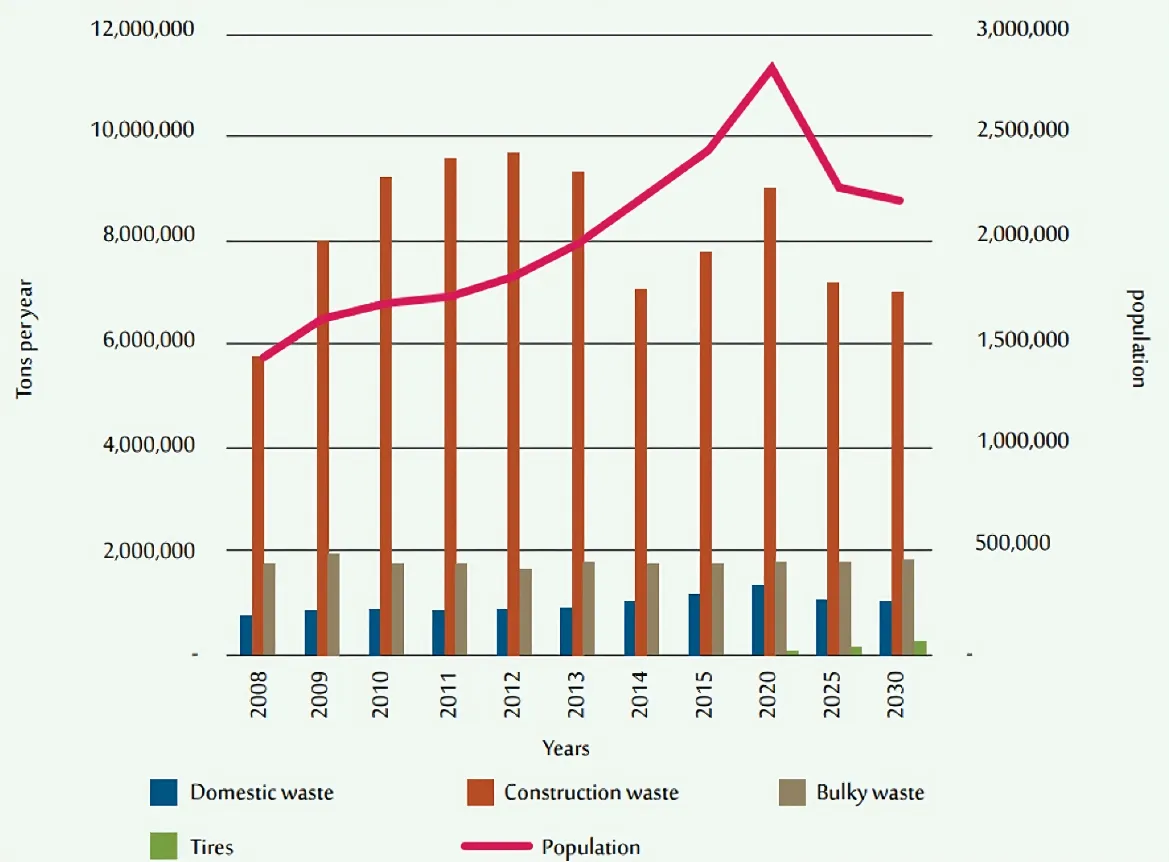 Figure 6. The waste production from 2008–2030. Note: Source [32].