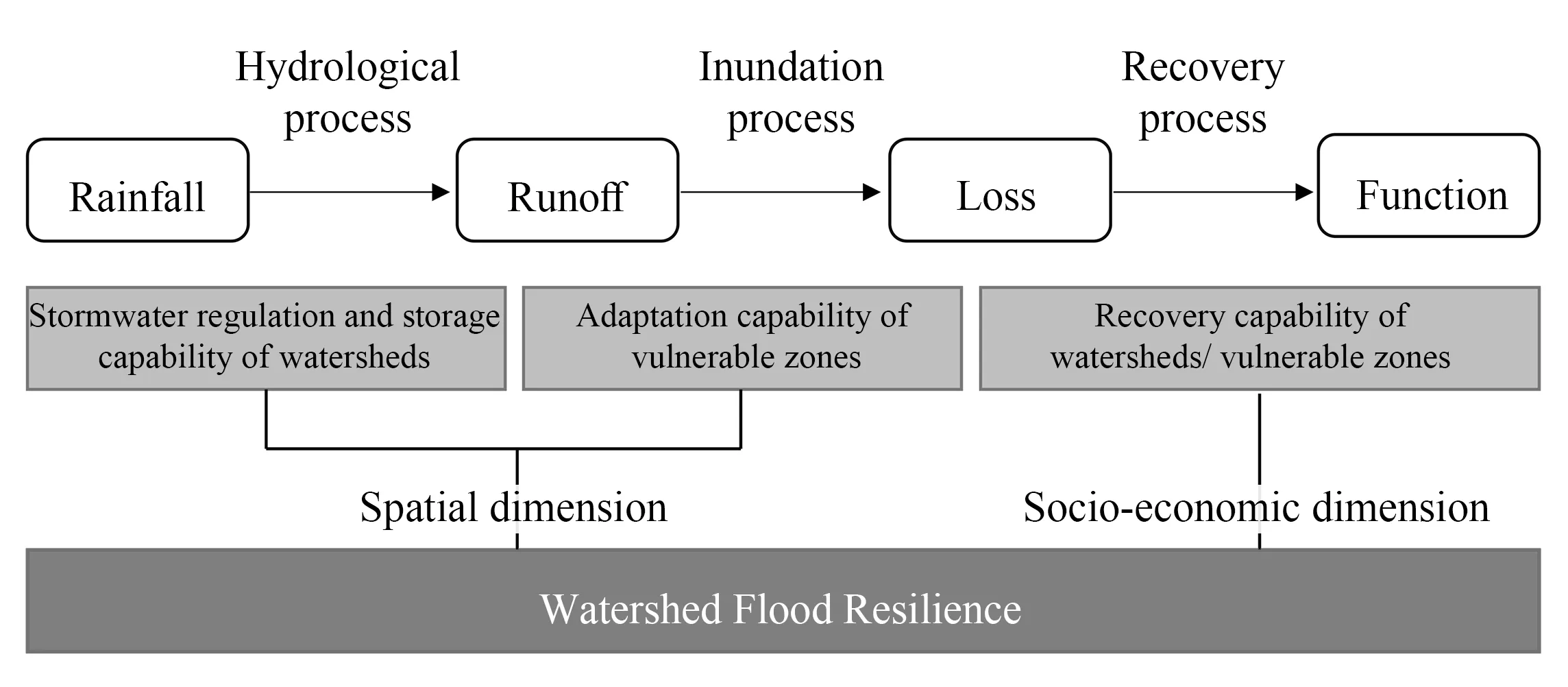 40]. Corresponding to this, WFR is defined by a watershed’s ability to withstand, adapt to, and recover from extreme precipitation and flooding [