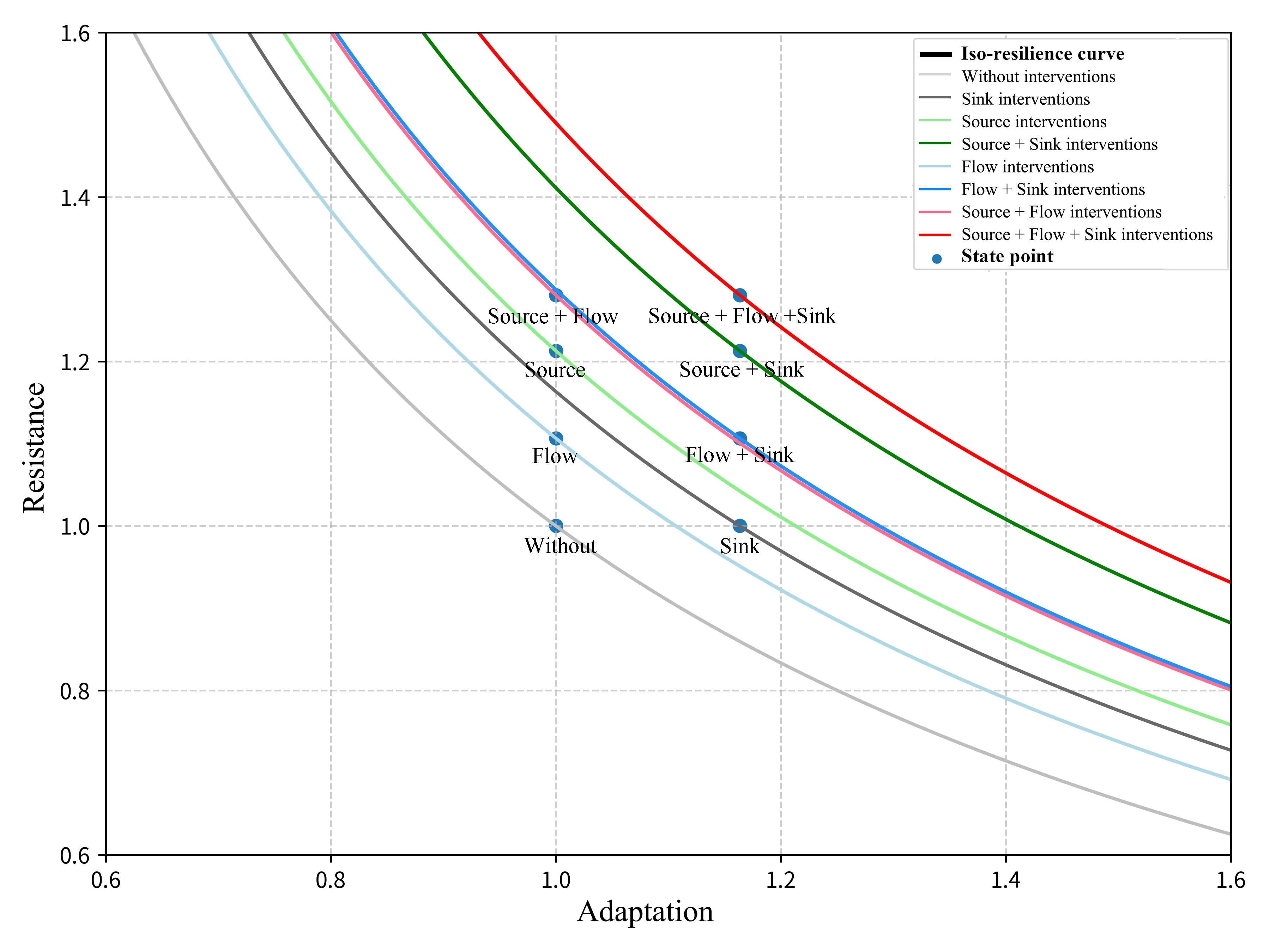 The resistance capacity, also referred to as flood regulation capacity, measures the ability of a watershed to buffer and attenuate extreme rainfall and flood events. As shown in