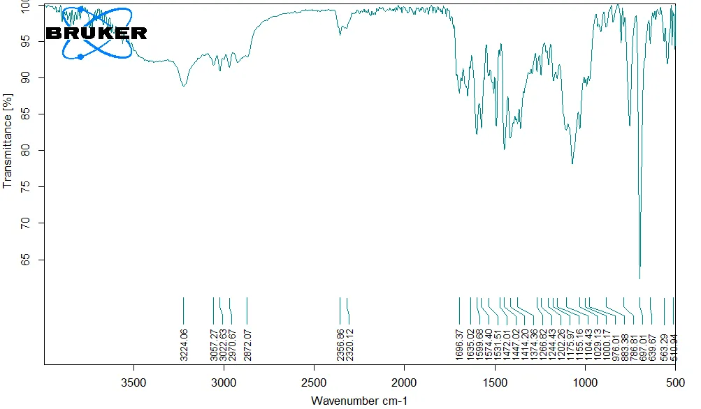 The IR spectrum presented in can be used to derive the following characteristic bands.