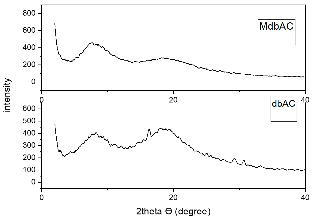 . X-ray diffractogram of Dibenzylidieneacetone (dbAc) and their microspheres (MdbAc).