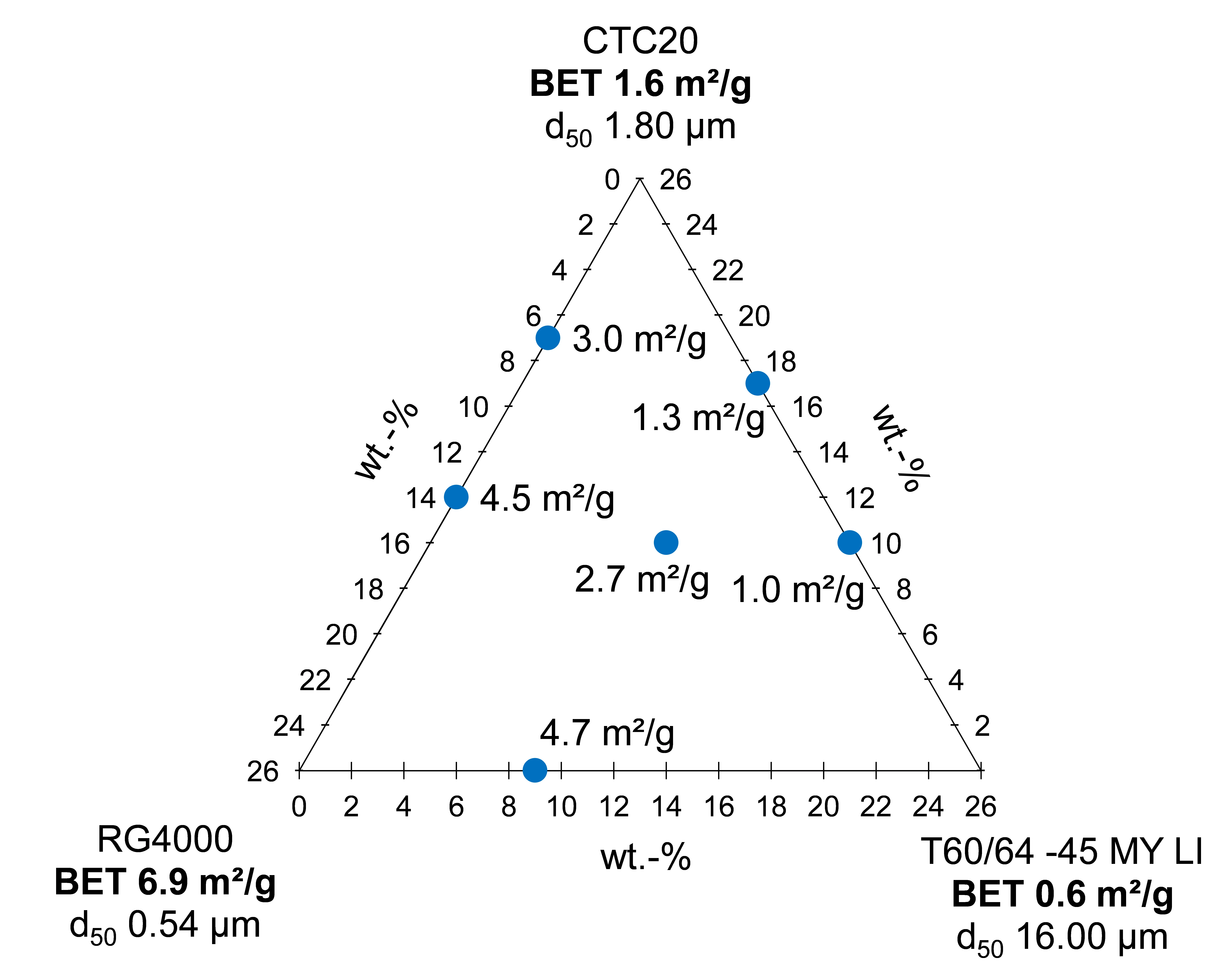45]. It is also described for matrix suspensions that higher specific surface areas adsorb more dispersing agents [