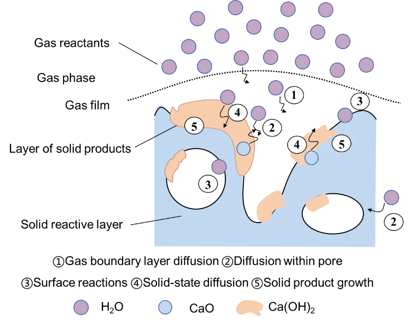 21]. Although gas-solid reaction systems exhibit different types of reactions depending on the reactants involved, the underlying microscopic physical and chemical steps are similar. For porous Ca(OH)