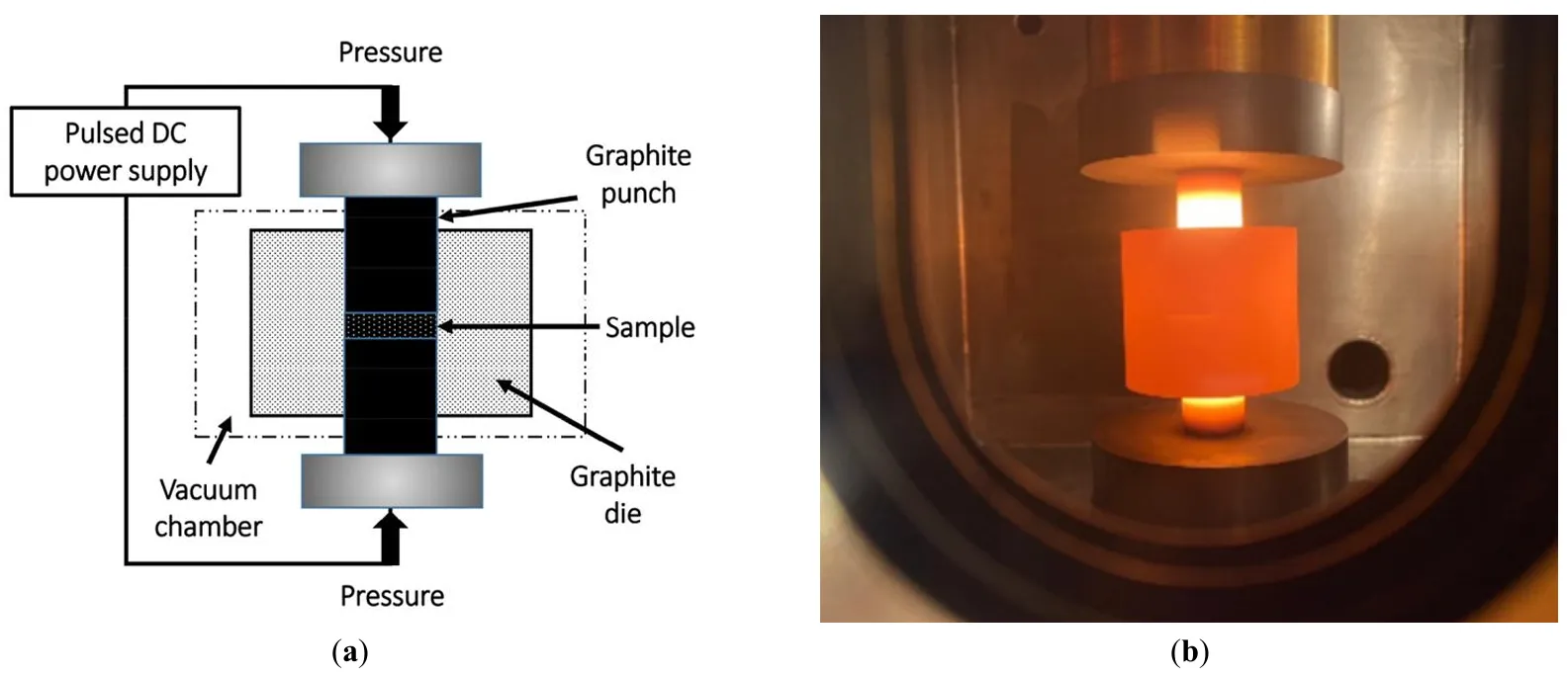 ). The SPS process involves the application of high-energy, rectangular direct current pulses, which generate resistive heating and activate the powder surface through the formation of spark plasma in the interparticle gaps. This unique combination of electrical and thermal effects accelerates densification and promotes the formation of strong interparticle bonds, making SPS a highly efficient sintering method [