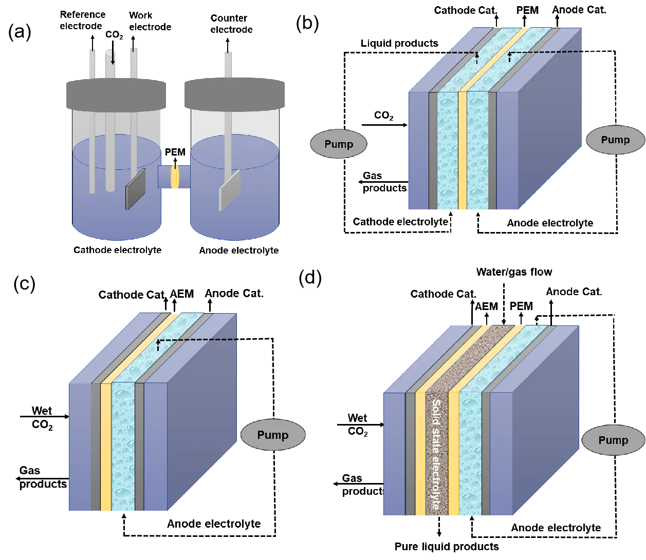 2RR occurs at the electrode-electrolyte interface and involves multiple proton–electron transfer steps. Depending on the number of electrons transferred, a variety of reduction products can be obtained, including CO, formate, methane, methanol, ethylene, and ethanol [