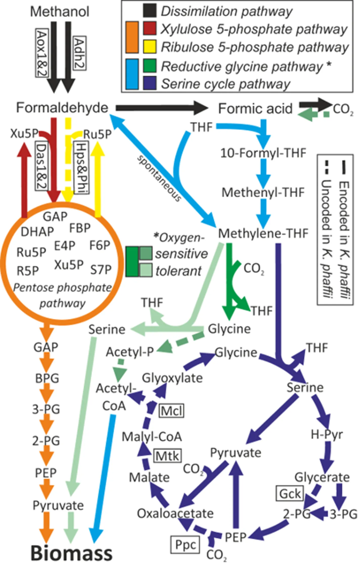 Mitic BM, Troyer C, Lutz L, Baumschabl M, Hann S, Mattanovich D. The oxygen-tolerant reductive glycine pathway assimilates methanol, formate and CO