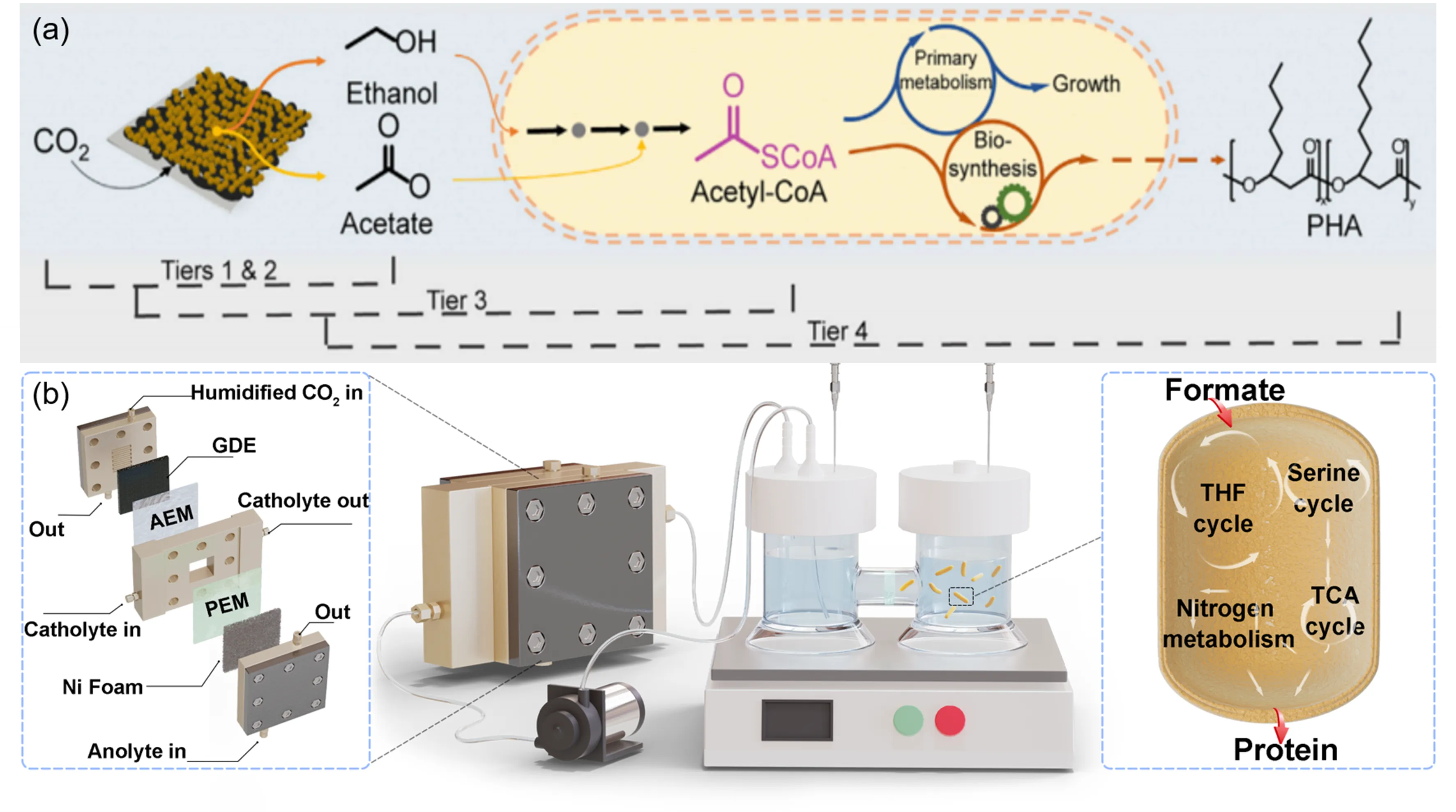 2 via a customizable electrocatalytic–biocatalytic flow system.