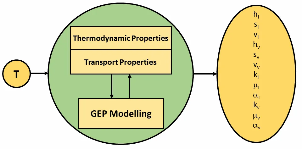 The accurate determination of thermodynamic and transport properties is critical for optimizing refrigeration cycle efficiency. These properties influence system performance, energy consumption, and overall sustainability. Traditional methods of determining these properties, including experimental measurements and empirical correlations, can be time-consuming and costly. As an alternative, machine learning and computational intelligence methods such as genetic programming (GEP) have gained popularity in predictive modelling.