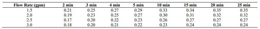 Table 2. Response time calculated from the temperature response at each tested flow rate.