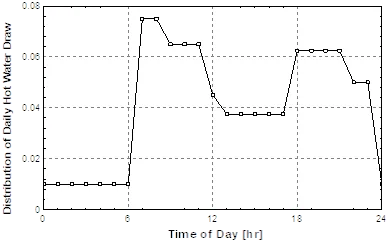 ANSI/ASHRAE Standard. Section 8.9.4 Hourly Domestic Hot Water Fraction. In Energy Efficient Design of Low-Rise Residential Buildings; American Society of Heating, Refrigerating and Air Conditioning Engineers: Peachtree Corners, GA, USA, 1993; pp. 53–54.