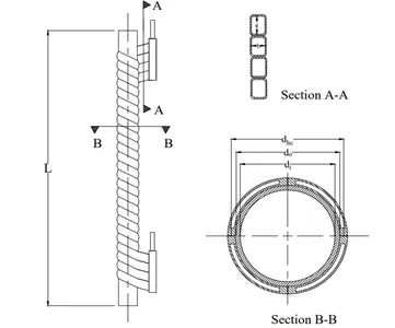 A DWHR system reduces energy consumption by transferring heat between two fluids. The two fluids in residential use are warm grey water and cold freshwater. Excess thermal energy in grey water is transferred to preheat fresh cold water before it reaches the water heater. This reduces the home’s water heating energy consumption. A DWHR device can be designed and installed in various orientations, sizes, and locations within a building. Vertical units recover more heat but may require more space, while horizontal units may be more suitable for homes with limited space or no basement. Vertical devices typically use a copper helix wrapped around a central copper drainpipe, either in a single or quadruple pass. shows different vertical and horizontal DWHR device designs.
