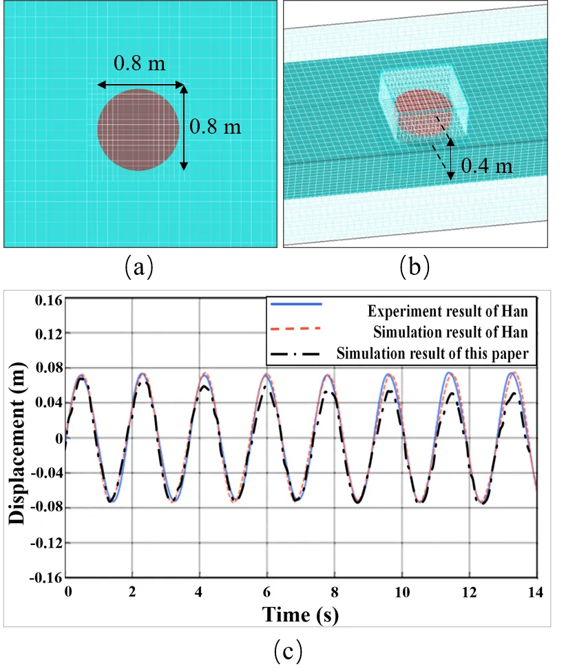 36] as follows: Moderate waves, with heights ranging from 1.25 to 2.5 m, have an annual probability of occurrence of 7.1%. Waves with a period of 4 to 5 s have a 16.5% probability of occurrence, while for waves with a period between 5 and 6 s, the occurrence probability is 7%. Although, the combined working condition of the above-mentioned wave height and wave period is a low-occurrence event. Its occurrence probability is relatively high within the category of extreme wave working conditions. Therefore, wave conditions with similar parameters are selected for numerical simulation in this study.
