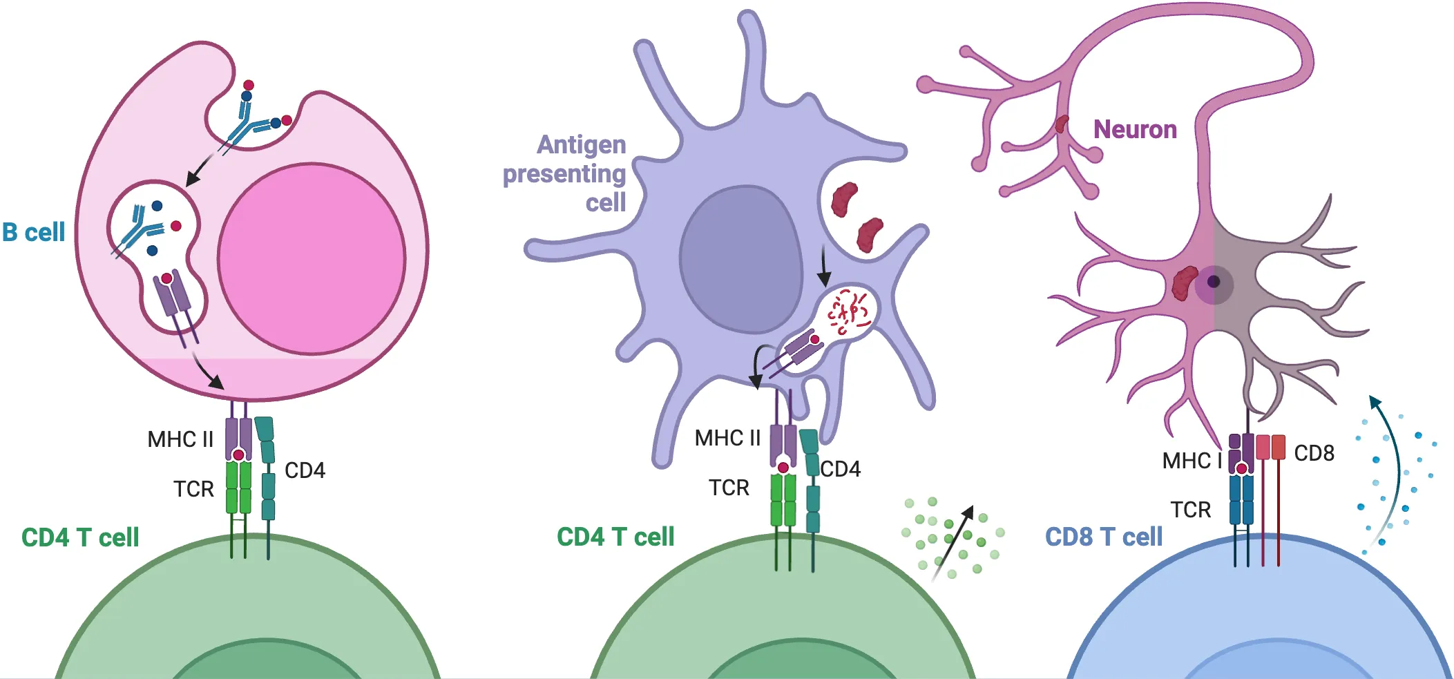Among autoimmune diseases, multiple sclerosis (MS) is widely recognized as an autoimmune disorder mediated by T cells that erroneously recognize and attack the body’s myelin, the protective sheath surrounding nerve fibers. Post-mortem analysis of brain tissue from MS patients reveals increased T cell infiltration, with a predominance of CD8