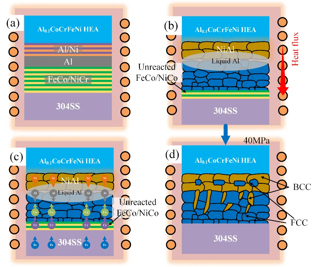 Scholars sought aggressively new technological methods to reduce brazing temperature and holding time, while ensuring the best mechanical properties of the joint. HEAs joining through reactive bonding, particularly with Al/Ni reactive multilayers nano-foils (auxiliary heating layer), offers plentiful advantages [