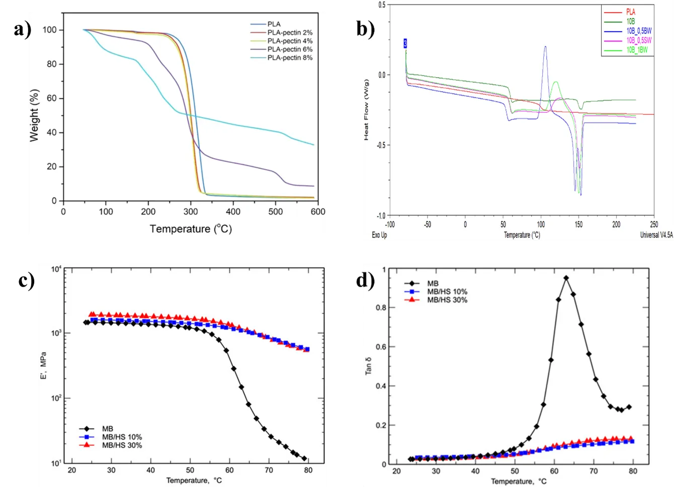 76]. The biopolymers are employed in specific fields depending on their cost, availability, moisture absorption, thermal stability, mechanical behaviour, degradation stability, and biocompatibility. PLA and PHAs are the two widely used biopolymers in production and application [