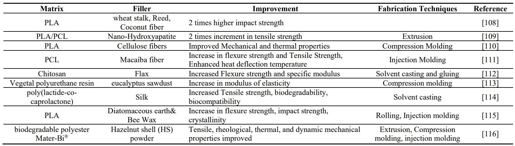 98] defined biocomposite as a composite material made up of matrix phase obtained from a sustainable and renewable source and natural fibers as reinforcement. Deepa et al. defined biocomposites as prostheses, biocomposites are either made up of bio-based material as the matrix and afiller scattered throughout it, or a structure of alternating portions of two or more types of biomaterials [