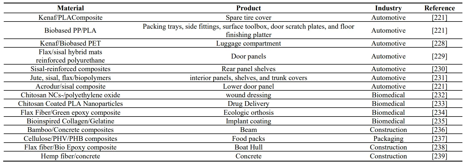 Akampumuza O, Wambua PM, Ahmed A, Li W, Qin XH. Review of the Applications of Biocomposites in the Automotive Industry.