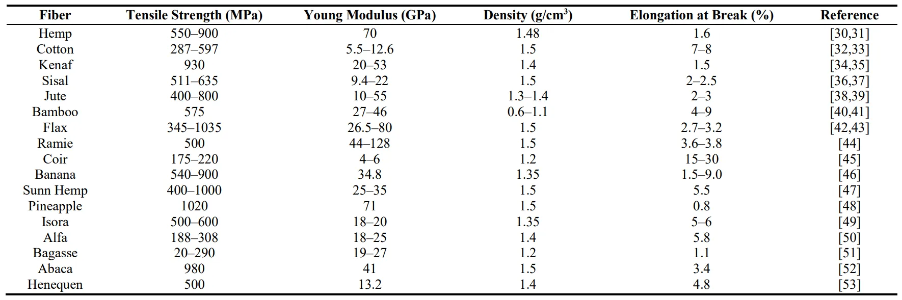 Li M, Pu Y, Thomas VM, Yoo CG, Ozcan S, Deng Y, et al. Recent Advancements of Plant-Based Natural Fiber–Reinforced Composites and Their Applications.