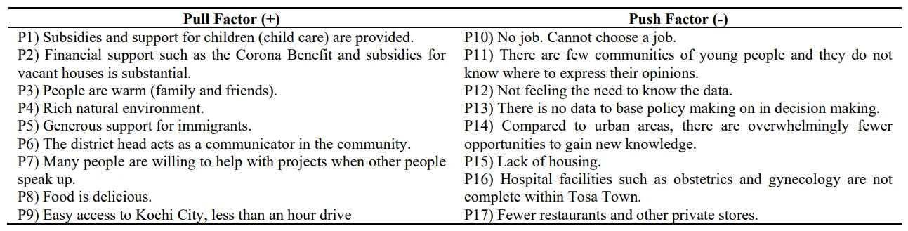 Table 5. Classification of Pull and Push factors.