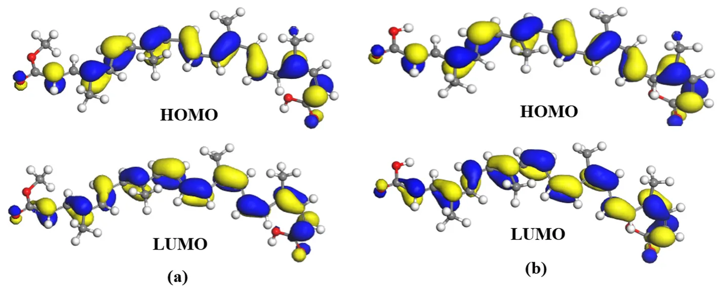 The molecular structures of bixin and nor-bixin were optimized using the Forcite module within the Materials Studio Accelrys software suite to achieve minimum energy configurations. Further quantum chemical calculations were performed using the Dmol
